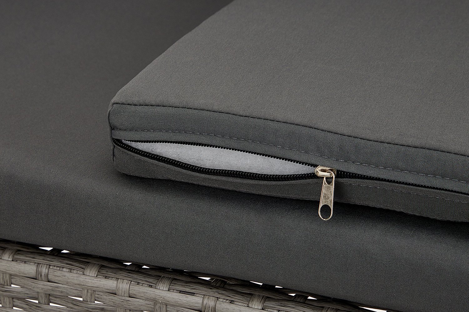 Для дивана в наборе предусмотрен матрас размером 88х5х45 см, а на креслах подушки для сидения размером 43,5х5х45 см. Все матрасы и подушки одеты в съемные чехлы, материал которых 100% полиэстер. Полиэстер, так же как и искусственный ротанг, является синтетическим материалом, которые не поддается воздействию осадков, ультрафиолета и разложению.